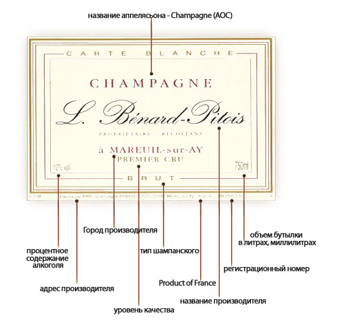 На каждой этикетке шампанского имеется дополнительная возможность контроля — контрольный номер, профессиональный регистрационный код, разработанный в 1990 году. Перед многозначным числом стоит сокращение из двух букв.