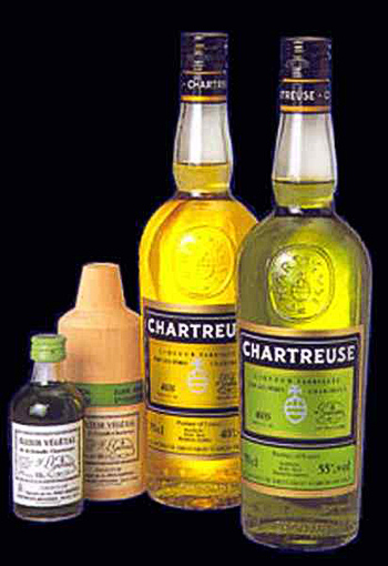 Растительный эликсир Гранд-Шартрёз: Изготовлен в соответствии с оригинальным рецептом, разработанным в 1605 году, его крепость 71 %. Употребляется в грогах, настойкахили на кусочке сахара.