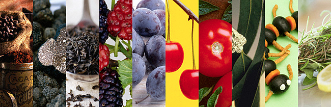 Фруктовые и овощные тона: ежевика, шелковица, черная смородина, слива, голубика, черная и красная вишня, болгарский перец, черная и зеленая олива, фенхель, листья томата.