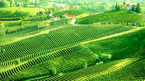 Пьемонт — один из трех самых известных и популярных регионов Италии. Он приобрел славу благодаря густым, благородным Бароло и Барбареско, сделанным из сорта Неббиоло, и за легкое белое игристое Москато д’Асти. В Пьемонте самое большое количество зон DOC-DOCG — 47 (включая региональную — Piemonte DOC), и большинство виноделен специализируется на производстве марочных вин. Мастерством, уважением к традициям и преданности местным сортам винограда, растущим в местах их исторического обитания, пьемонтские виноделы не имеют конкурентов в Италии. DOCG — Denominazione di origine controllata e garantita гарантия качества и происхождения итальянских вин, дословно — «название контролировано и гарантированно по происхождению». Климат Пьемонта жесткий по итальянским стандартам, с отчетливым разделением по сезонам. Зимы холодные и снежные. Летом большую часть времени жарко и сухо. Весной и осенью прохладно и обычно появление туманов во время сбора урожая. Основная масса винодельческих хозяйств региона находится в области Langhe (Ланге) и на холмах Monferrato (Монферрато), примыкающих к Апеннинам на юго-востоке. Но некоторые великие вина также получаются из винограда, выращенного на виноградниках, расположенных вдоль подножий холмов Альп, идущих на север между озером Maggiore (Маджиоре) и долиной d’Aosta (д’Аоста). Центром производства элитных вин является город Alba (Альба) на реке Tanaro (Танаро). Поблизости, на холмах Langhe, Бароло («король вин и вино королей») производится в количестве около 7 миллионов бутылок в год, а производство Барбареско, некоторые эксперты считают его равным, редко достигает половины такого объема. Оба вина делаются из винограда Неббиоло, который дает им мощную структуру, делает их способными улучшаться благодаря выдержке, особенно если это были прекрасные года. |